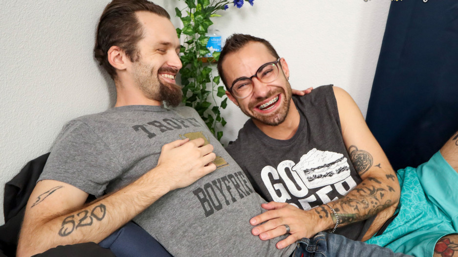 Brad Pardee and Corey Mack are a real life couple who both do porn! Brad has been in the industry for quite some time, and Corey appears alongside Brad from time to time. In this episode of "Real Sex", Brad and Corey play with each other as they would in their own bedroom, and Corey fucks Brad hard until he blows a huge load all over Brad's back!